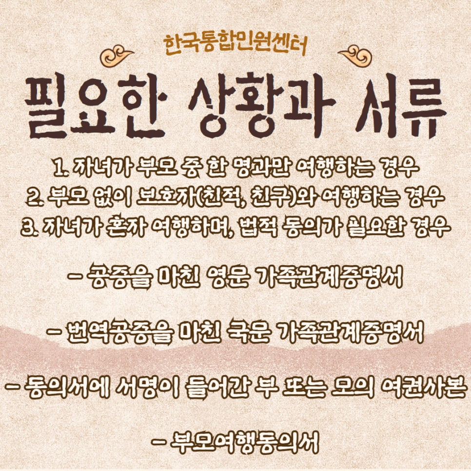 이제부터 미성년자의 출국을 위해 어떤 서류가 필요한지,