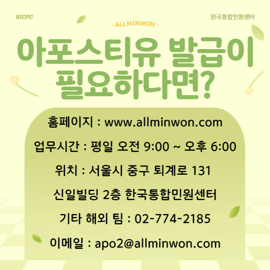 - 문서 발행 국가에서 아포스티유를 받아주세요