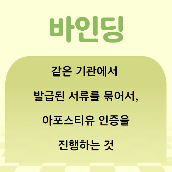 바인딩은 서류 여러 부에 아포스티유 1개가 발급되니 묶인 서류들은 따로 제출이 불가능하며