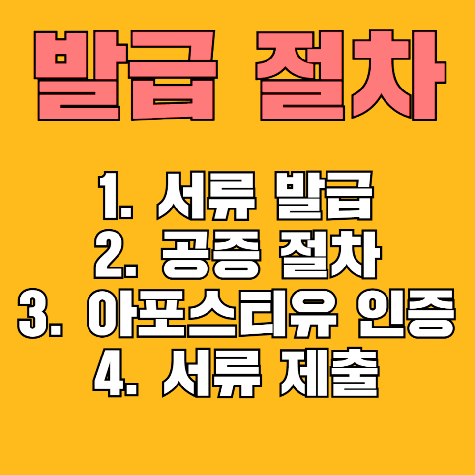 발급 / 공증 / 아포스티유 / 번역 공증 / 제출까지의 절차를