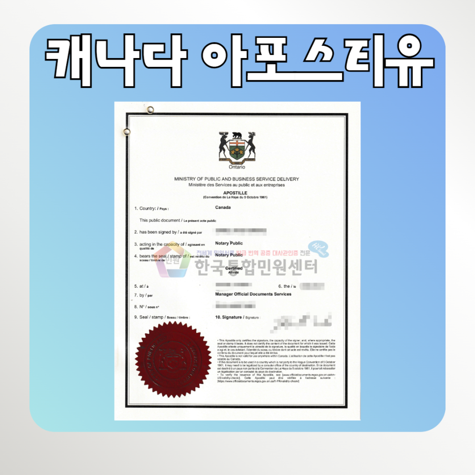 다행히 캐나다와 한국 모두 아포스티유 협약국이지만