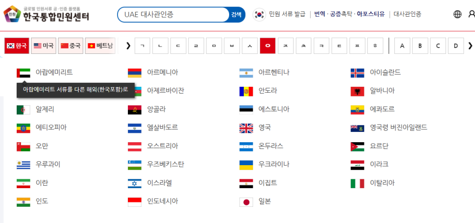 UAE 외에도 다른 국가의 대사관인증 발급이 가능하며