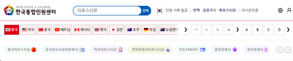 - [(필요한 국가) 아포스티유] 검색하기
