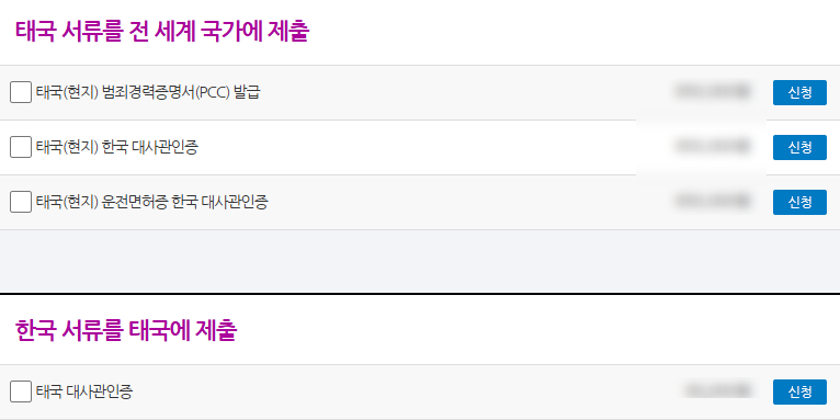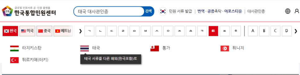 태국 외에도 다양한 국가의 대사관인증이 가능하며