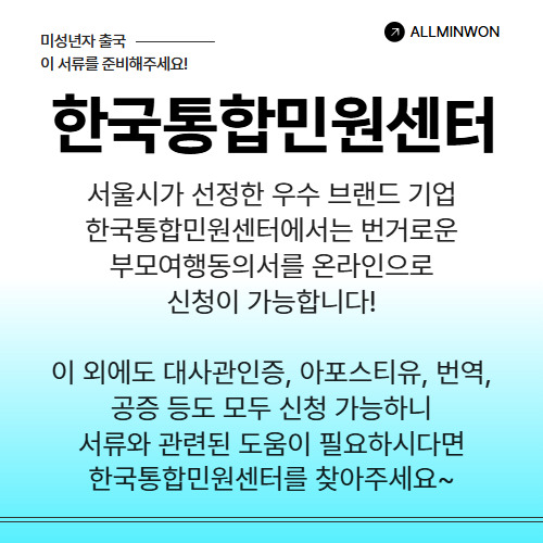 한국통합민원센터를 통해 부모여행동의서를 온라인으로 신청하세요!