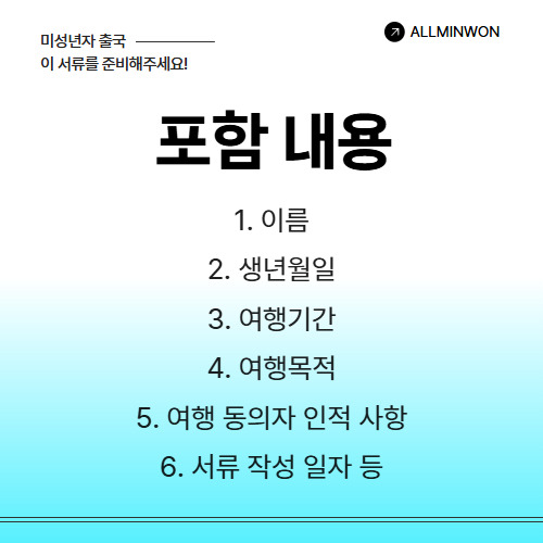 미성년자의 안전하고 편안한 여행을 위해 필요한 부모여행동의서를