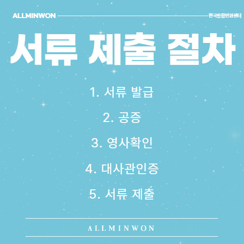 한국에서 서류 발급 및 공증 과정을 거친 서류에