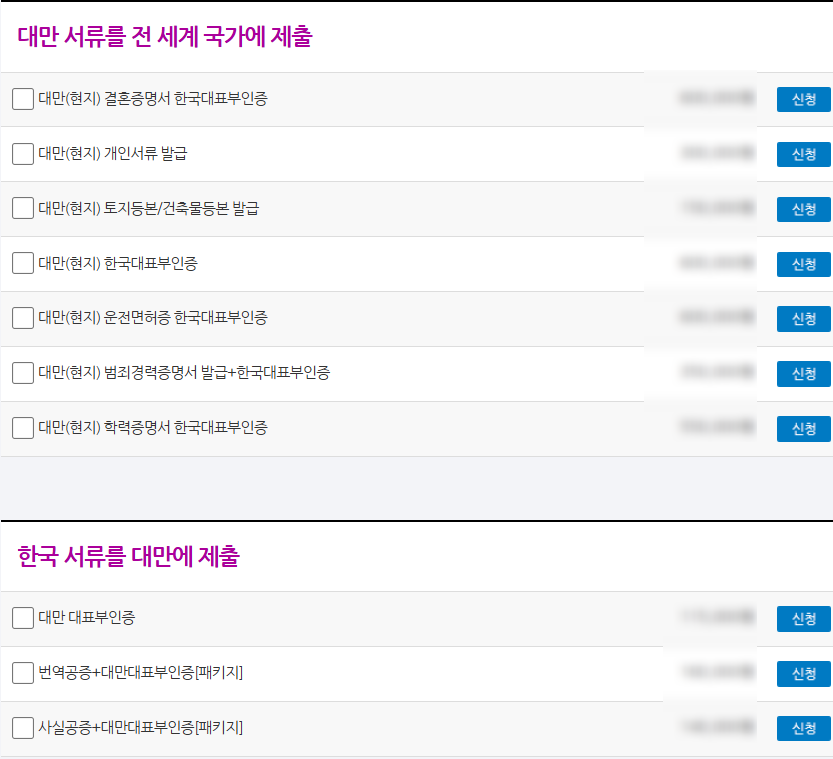 대만 대표부 인증을 받아 서류를 제출해 주시면 되는데요