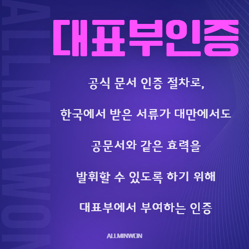 대만 서류를 한국에 제출한다면 한국대표부 인증을 받아 서류를 제출해 주시면 됩니다