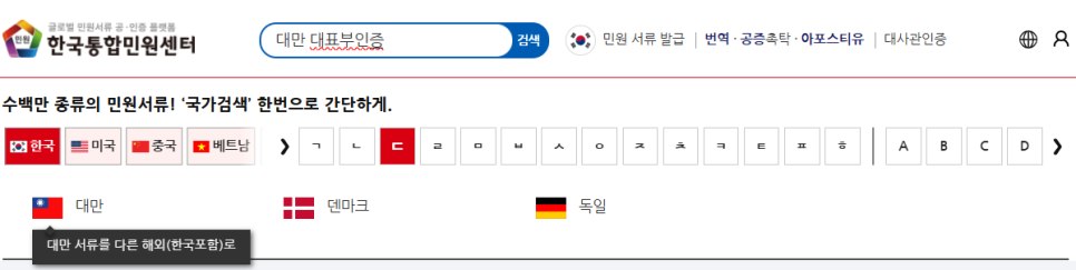 - [대만 대표부인증] 검색하기
