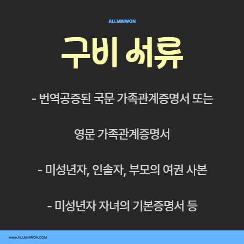 - 번역공증된 국문 가족관계증명서 또는 영문 가족관계증명서