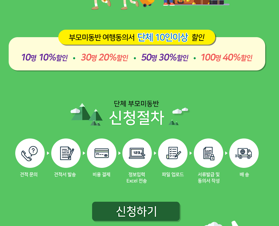 단체 부모여행동의서 서비스를 신청하시고 할인받으세요~