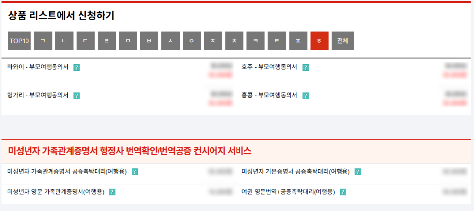 일반 부모여행동의서와는 다른 상품이며