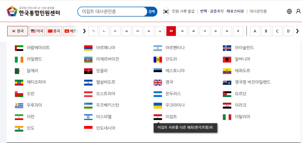 - [이집트 대사관인증] 검색하기