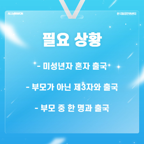 보통 미성년자 혼자 출국하거나 부모가 아닌 제3자와 출국하는 경우에는