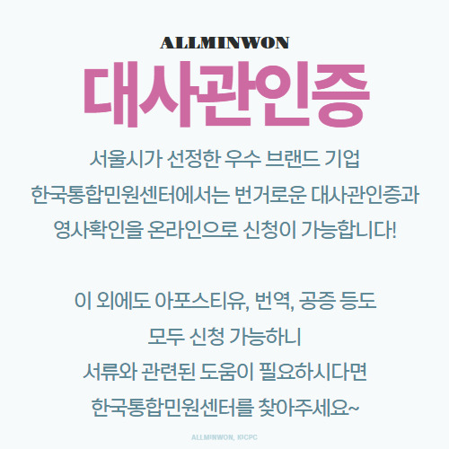 번역부터 공증, 영사확인 그리고 대사관인증까지 간편하게 신청 가능하니