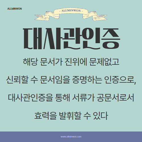 '서류에 대한 신뢰성을 입증'해주는 절차인 '대사관인증'을 받아야 하는데요