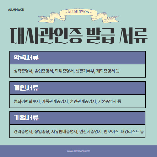 특정 서류에 대사관인증을 받아야 하는 것은 아닙니다!
