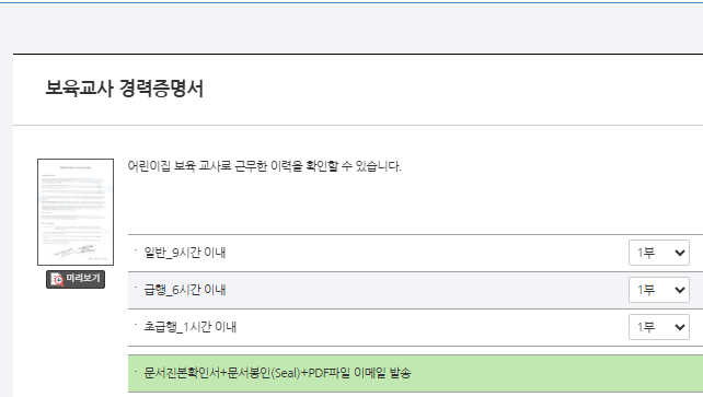 시간이 없어서 그런데 보육교사 경력증명서를