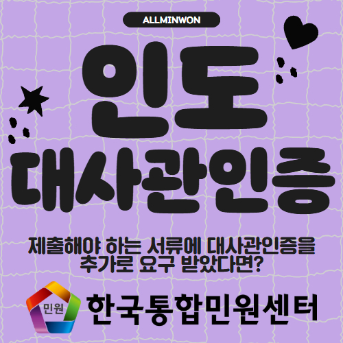 ※개인 서류에 대한 인도 대사관인증 필요시 별도 아래 연락처로 문의 바랍니다