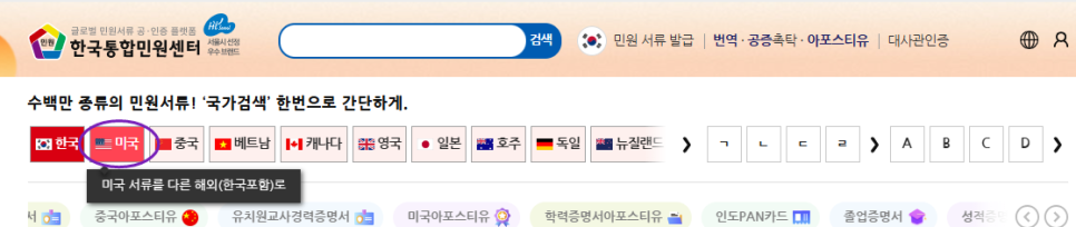 한국과 미국은 아포스티유 협약국이라 상관없지만