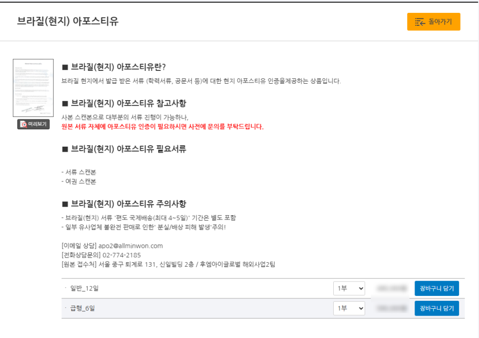 ※원본 서류 자체에 아포스티유 인증이 필요하시면 사전에 문의를 부탁드립니다