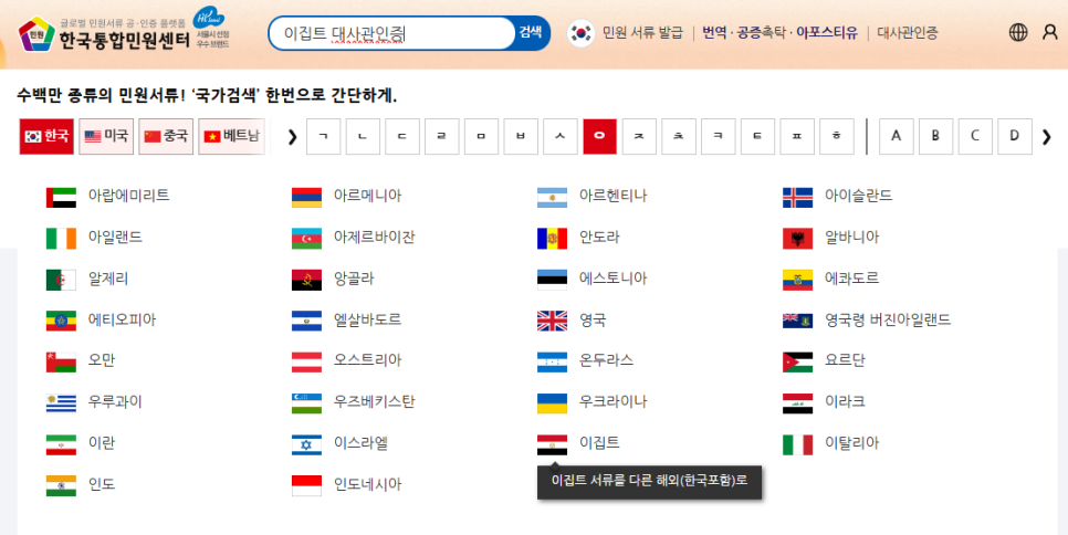 - [이집트 대사관인증] 검색하기