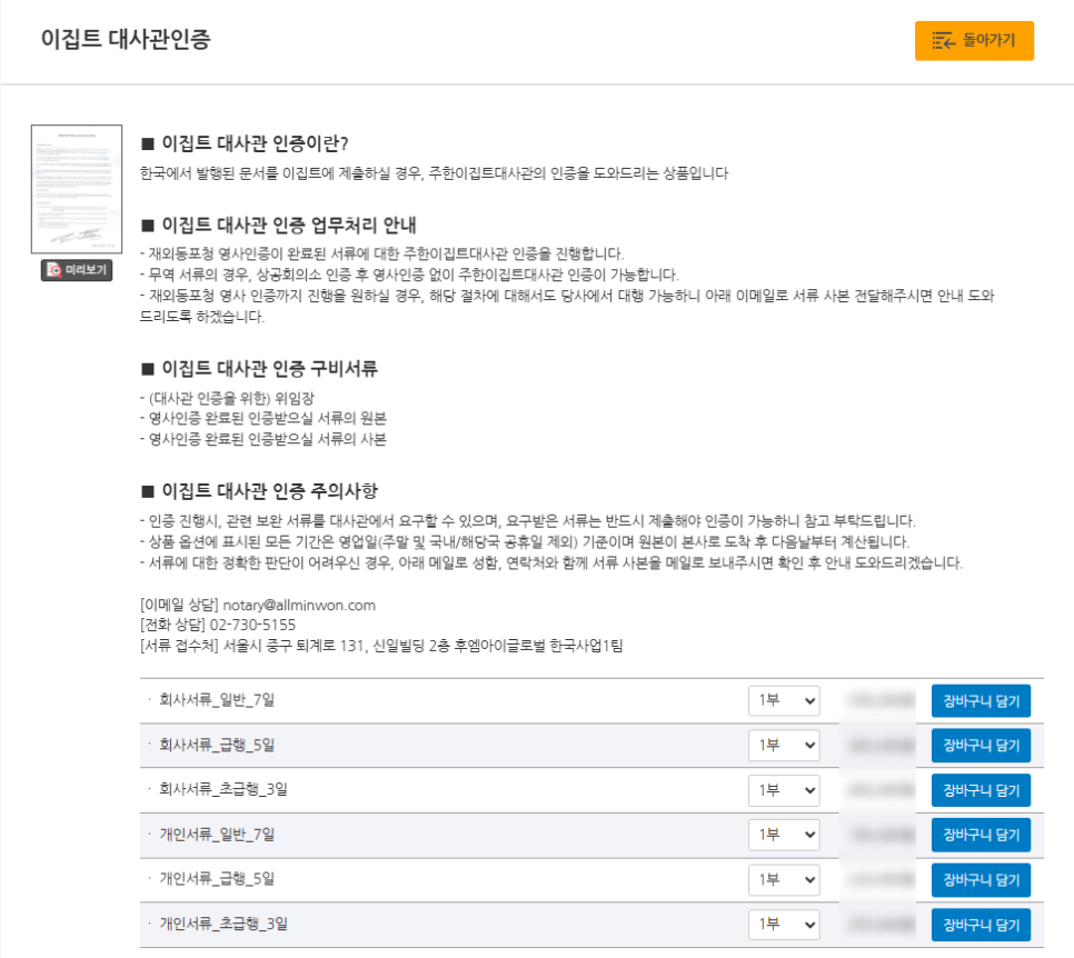 이집트 외에도 다른 국가의 대사관인증 대행이 가능하니