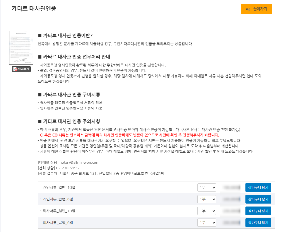 현재 카타르는 아포스티유 협약국이 아니기 때문에 서류를 제출할 때는