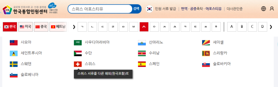 - [스위스 아포스티유] 검색하기