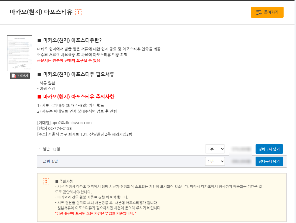※마카오와 한국은 아포스티유 협약국입니다