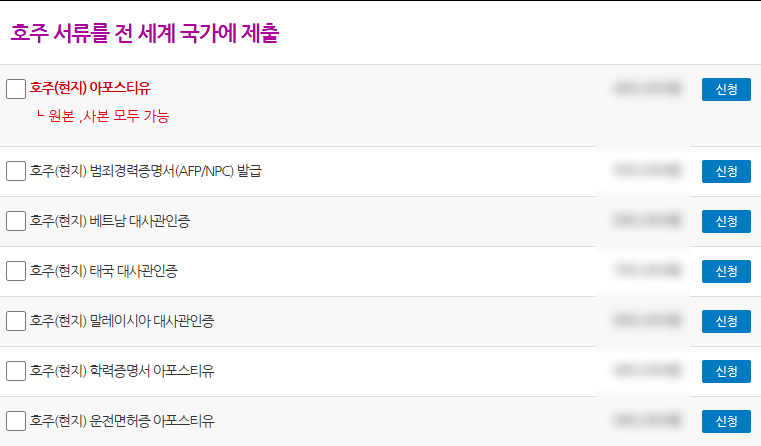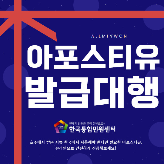 호주 외에도 다른 국가의 아포스티유 대행도 진행해 드리고 있으니