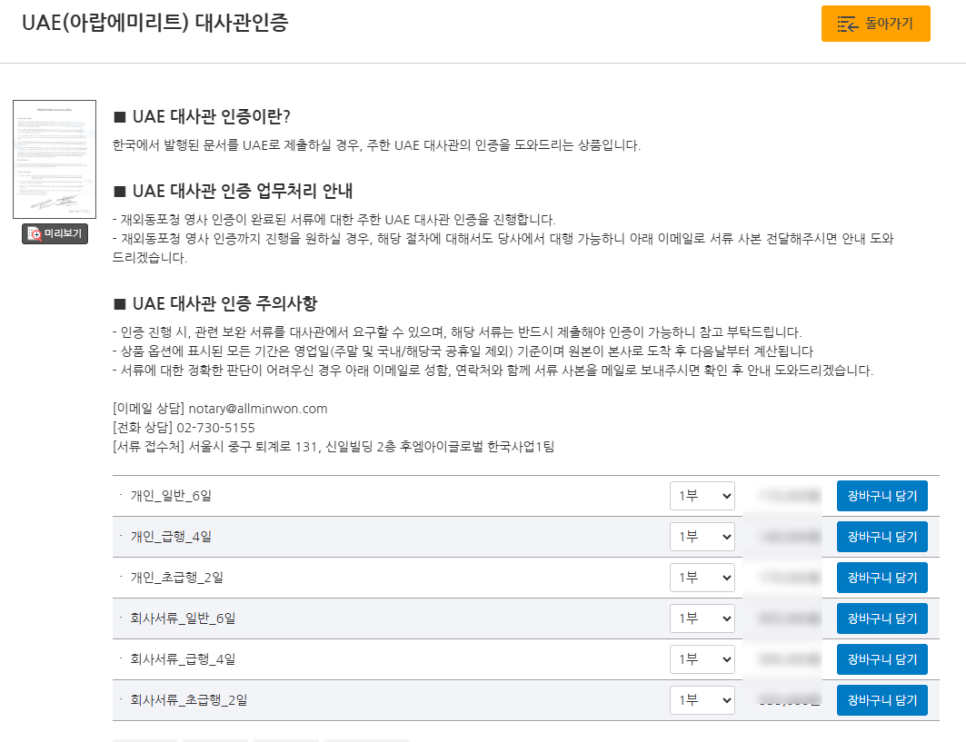 UAE 외에도 다른 국가의 대사관인증도 대행해 드리고 있으니