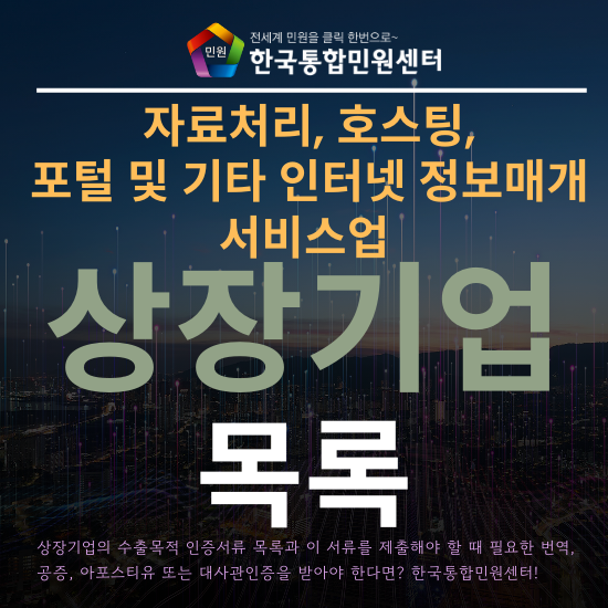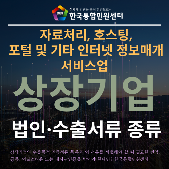 오늘은 자료처리, 호스팅, 포털 및 기타 인터넷 정보매개 서비스업 상장기업의 수출 목적 서류 목록과