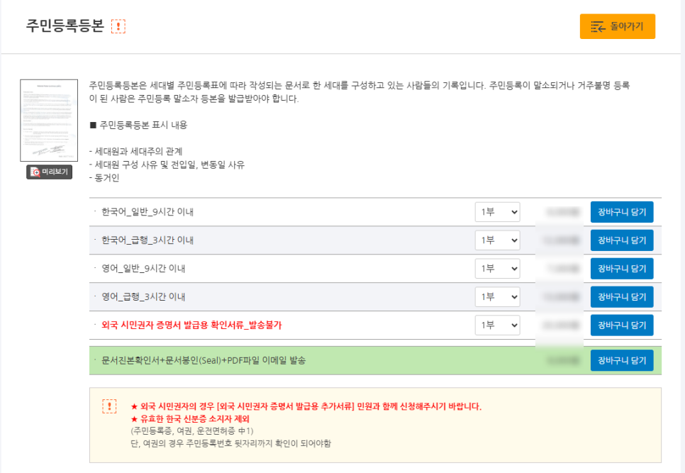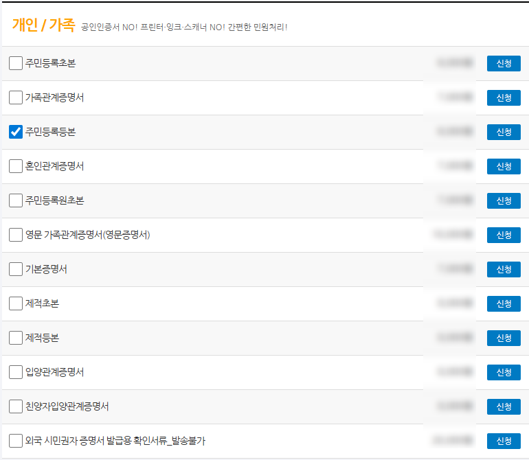 (이 외에도 다른 서류도 발급 신청 가능합니다)