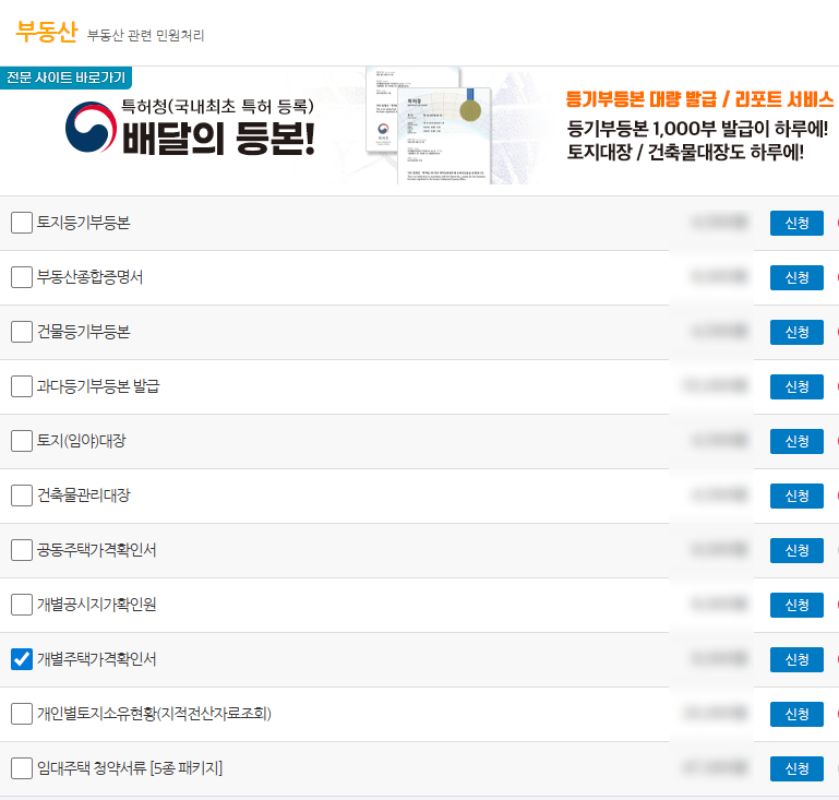 2. [개별주택가격확인서] 검색하기