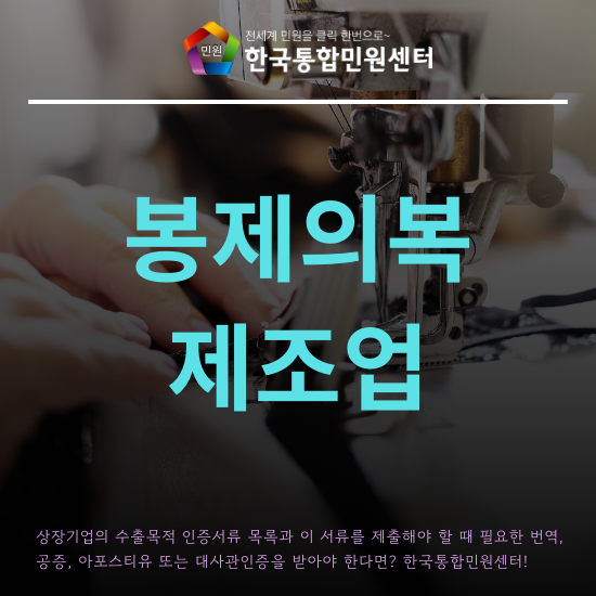 오늘은 봉제의복 제조업 수출 목적 서류 목록과