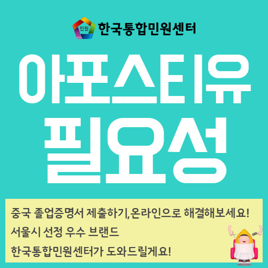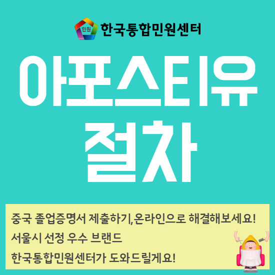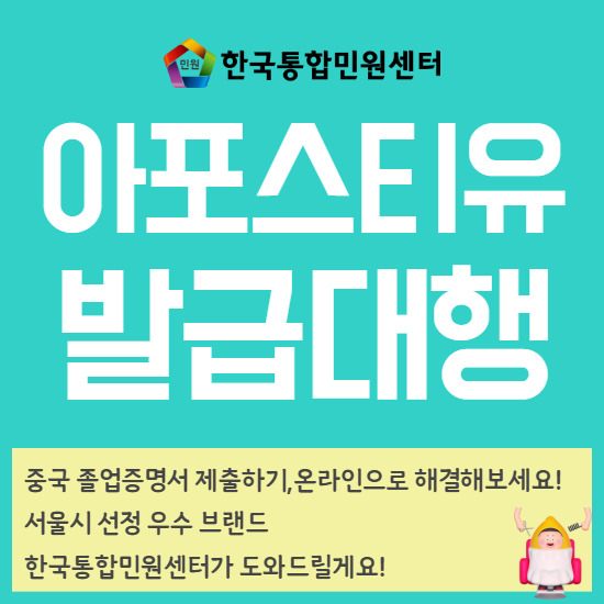중국 서류 제출을 위해 필요한 아포스티유 발급을 대행해 드리고 있는데요