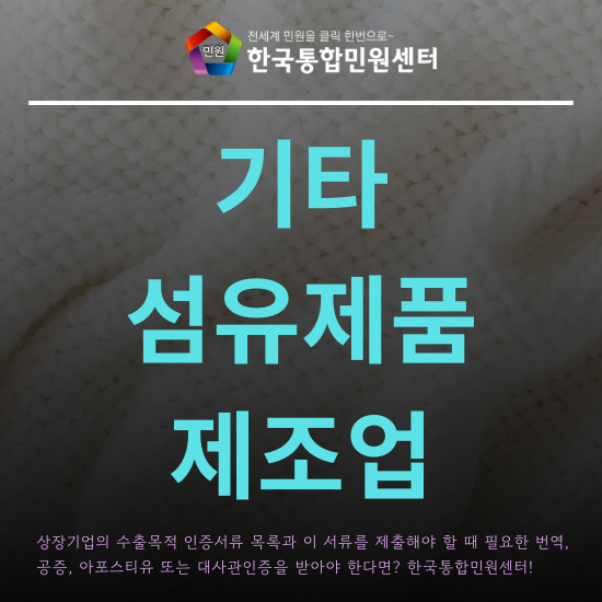 오늘은 편조원단 제조업, 편조의복 제조업, 기타 섬유제품 제조업의 상장기업의 수출 목적 서류 목록과