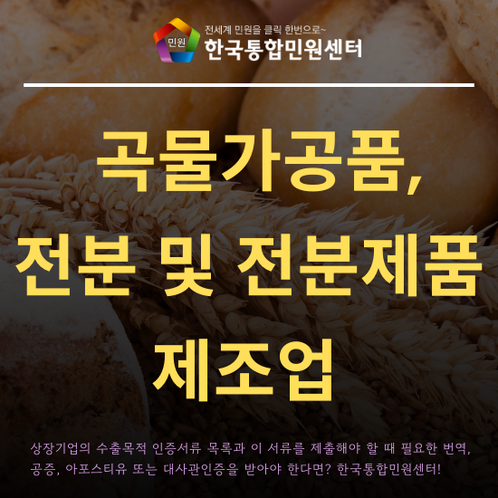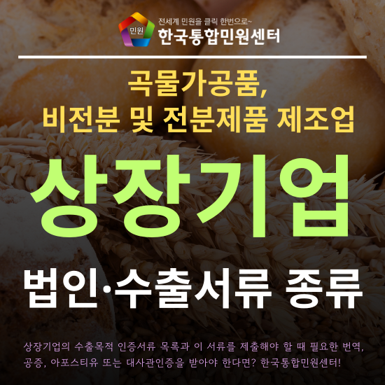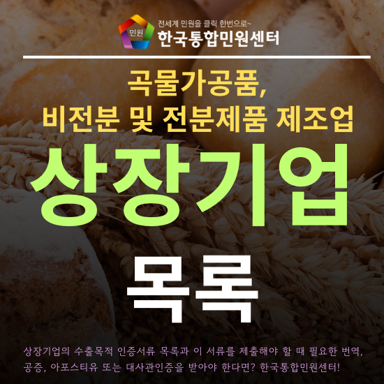 곡물가공품, 전분 및 전분제품 제조업 상장기업 법인·수출서류 종류