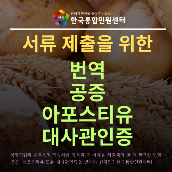한국통합민원센터는 해외 수출을 위해 제출하는 법인·수출서류 등