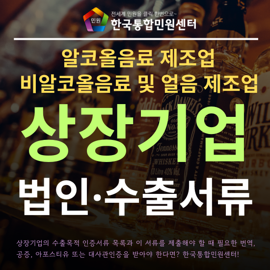 오늘은 알코올음료 제조업, 비알코올음료 및 얼음 제조업을 위한 상장기업 수출 목적 서류 목록과