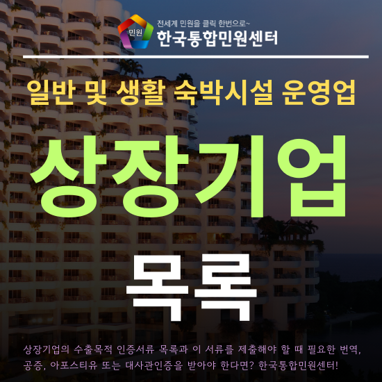 일반 및 생활 숙박시설 운영업 상장기업 법인·수출서류 종류