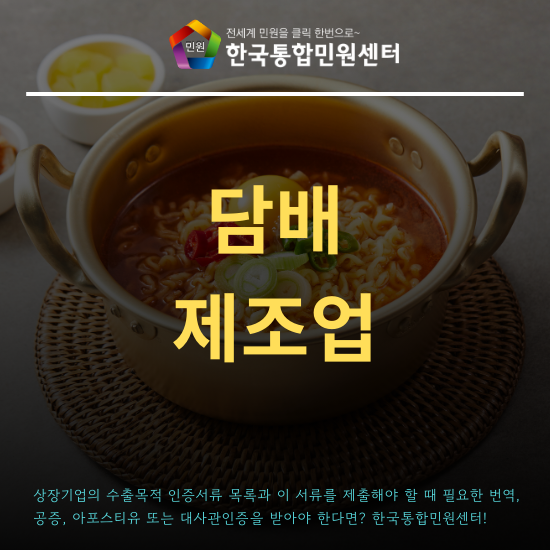 오늘은 기타 식품 제조업, 담배 제조업을 위한 상장기업 수출 목적 서류 목록과