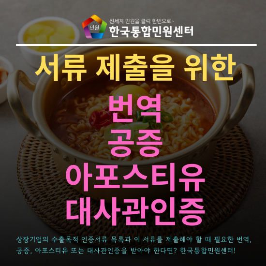 한국통합민원센터는 해외 수출을 위해 제출해야 하는 서류·법인 서류에 대한