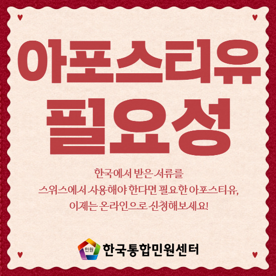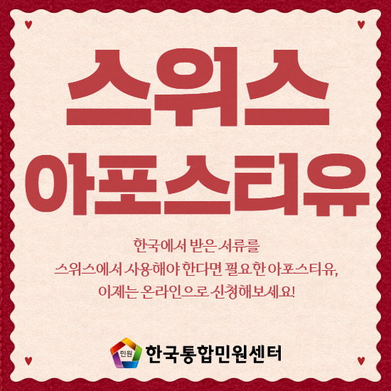 쉽게 말해, 준비한 서류에 아포스티유를 부착하면 스위스에 위치한 제출처 입장에서는