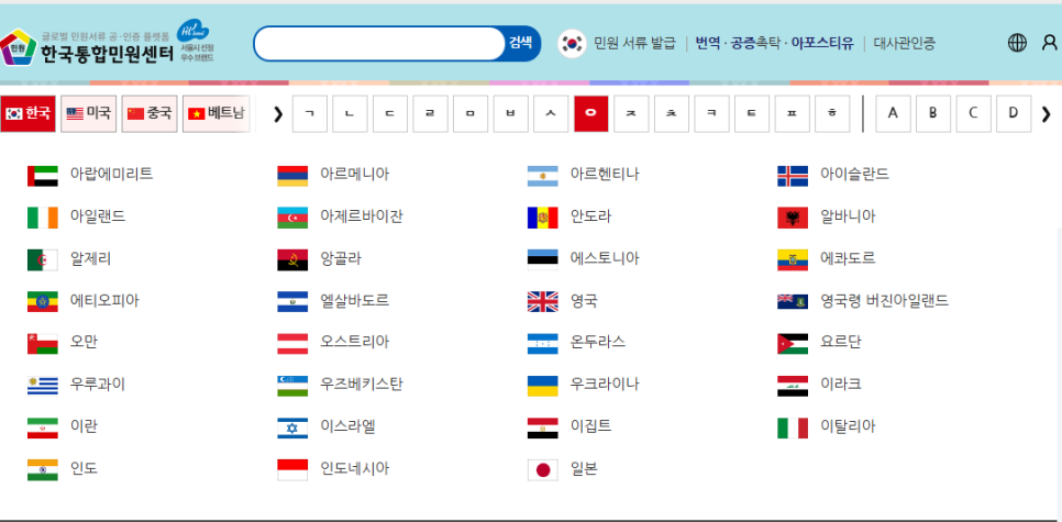 - [(필요한 국가) 아포스티유] 검색하기