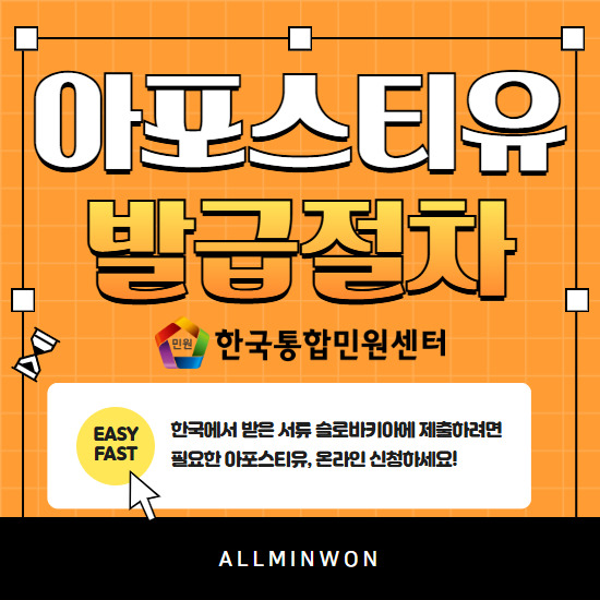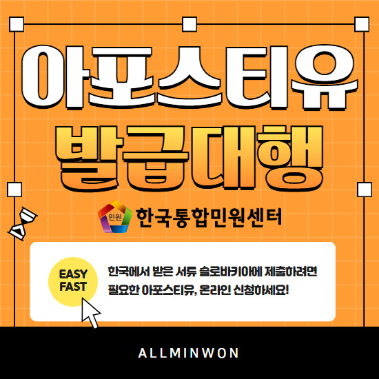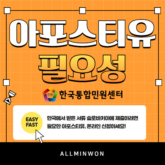 한국 서류를 슬로바키아에 제출하기 위해 필요한 아포스티유는 물론