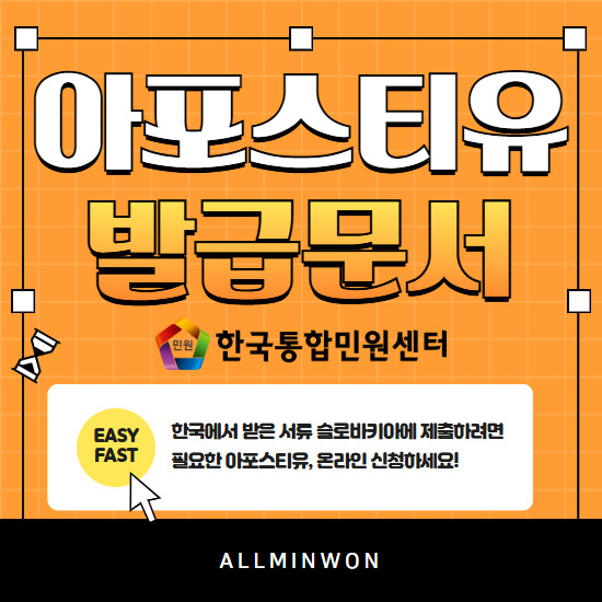 슬로바키아 서류를 다른 국가에 제출하기 위해 필요한 아포스티유까지 모두 신청 가능하니