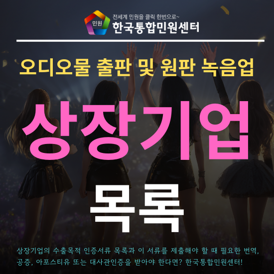 오늘은 오디오물 출판 및 원판 녹음업 상장기업의 수출 목적 서류 목록과